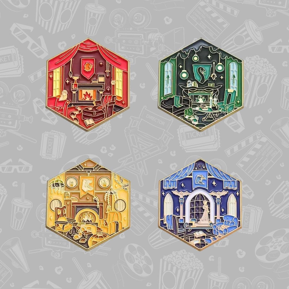 Show off your Hogwarts house pride with these stunning Hogwarts common room enamel pins! Featuring intricately detailed designs of each of the four house common rooms—Gryffindor, Slytherin, Hufflepuff, and Ravenclaw—these pins capture the unique atmosphere and charm of each in beautiful artistic detail.